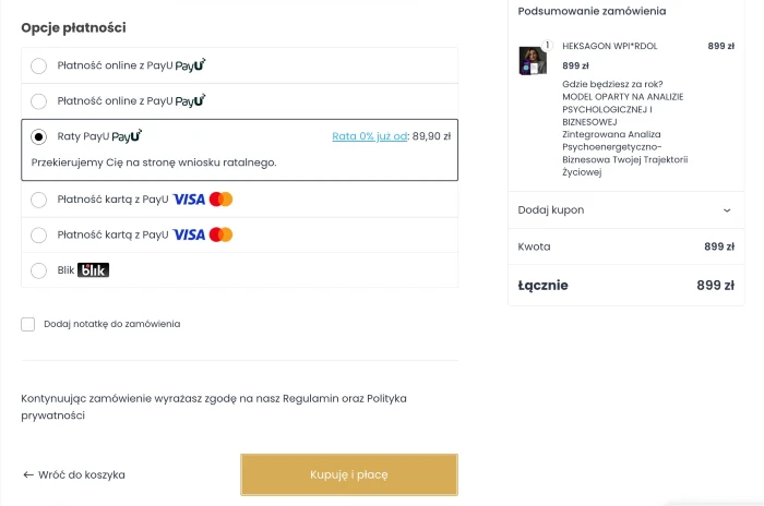 Jeśli chcesz skorzystać z tradycyjnych rat udzielanych przez bank, to wniosek kredytowy złożysz bardzo prosto i szybko. Gdy płatność rozłożysz na 10 rat, to prowizja za nie wyniesie 0%. Wszystkie koszty biorę na siebie a Ty cieszysz się z zakupu bez prowizji. Podczas składania zamówienia wybierz Raty PayU. Kliknij następnie „Kupuję i płacę”. Otworzy się symulator w którym wygodnie dopasujesz wysokość raty oraz długość okresu kredytowania. Jeśli zdecydujesz się na więcej rat, musisz liczyć się dodatkową opłatą. Szczegóły znajdziesz w symulatorze po wybraniu tej opcji płatności. Od teraz możesz cieszyć się supertransofrmacjami energetycznymi przy bardzo niskiej cenie miesięcznej.
