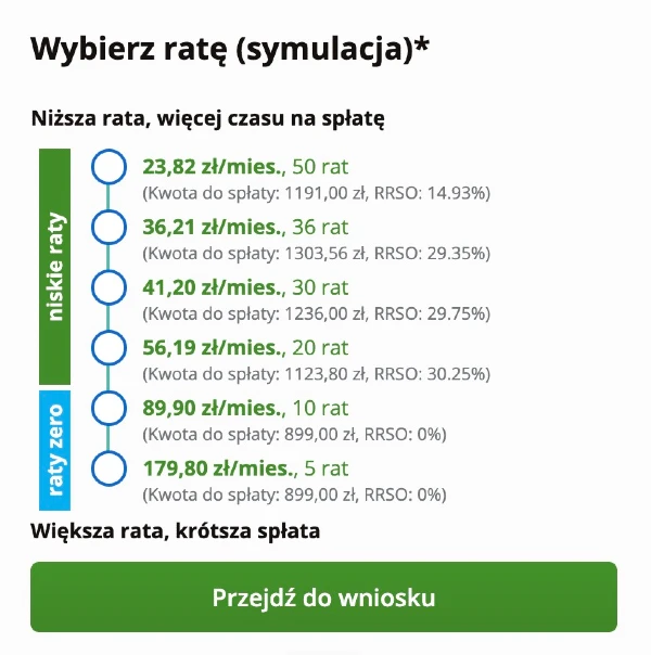Zakładasz konto w jednym z tych dwóch form kredytowania i opłacasz nimi zamówienie. Są to metody z odroczoną formą płatności o 30 dni ale po założeniu konta, zbadaniu Twojej zdolności kredytowej użytkownicy często dostają możliwość rozłożenia płatności na kilka rat. Szczegóły uzyskasz po kontakcie z daną instytucją.